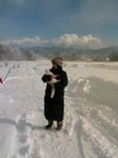 いました!!名前を呼ぶと奥の方から、あのマシューが姿を見せた。でも重い鉄の蓋がびくともしない。マシューも私とわかって、激しく泣きながら蓋のシマシマの間から手を伸ばす。おお〜今助けてあげるよ〜!!が、父と3人で叩いたり引っ張ったりしたけど、重い蓋は全然持ち上がらない。雪は降り続いているし、父は妹を駅まで送り届けないといけないし、119→水道屋に?したけどいつ来るかわからない。1人になった私はお隣さんに助けを求め、家族みんなが出て来てくれて大救出作戦!とうとう重い蓋が持ち上がりました!!お隣さんありがとう!!!どろどろのマシューを引き上げ、ハッシと抱き合う\(TOT)/。